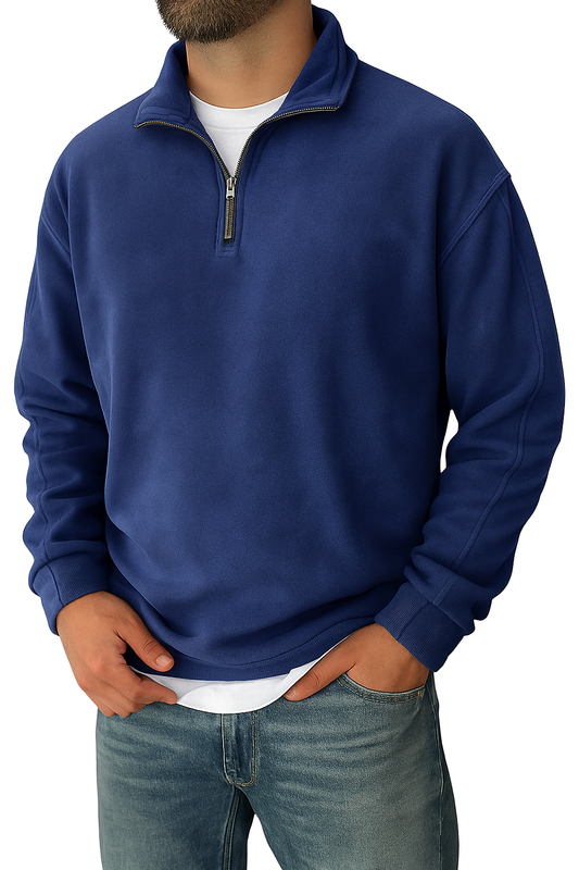 Pullover – Hoher Kragen, gesponnene Mischung und halber Reißverschluss, verstellbare Passform