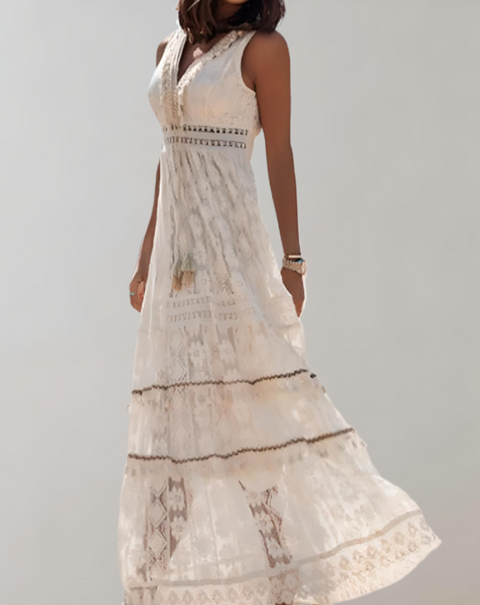 Lange Spitzenkleid mit schulterfreien Trägern – Eleganz und Komfort für alle Anlässe