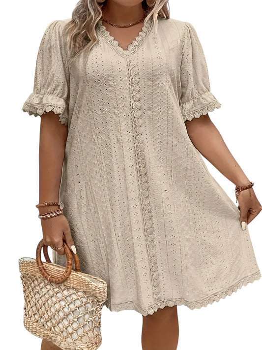 Damen Plus-Size Kleid mit V-Ausschnitt – Elegant & Bequem