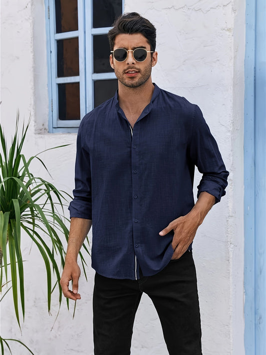 Herrenhemd | Hemden Herren für Alle Jahreszeiten mit Stehkragen und Relaxed Fit