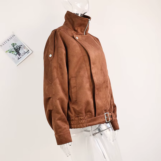 Women's Bomber Jacket – Casual Vintage Motorcycle Coat with Zipper