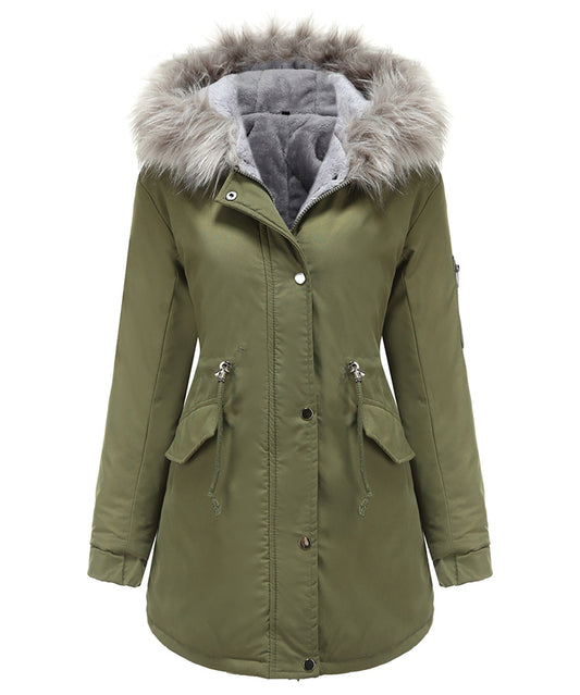 Damenjacke – Taillierte Passform – Knielang – Kapuze – Gerippte Bündchen – Reißverschluss vorne